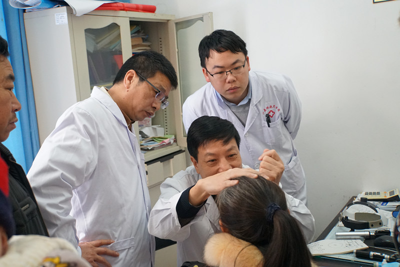 1月12日,在湖源分院,总医院眼耳鼻喉科主任李文章指导基层分院医务人员如何使用仪器、如何进行仪器保养,并就眼耳鼻喉科常见病、多发病的诊治为基层医务人员提供技术指导;急诊科陶文峰副主任医师为前来就诊的患者认真询问病情、查体诊治及指导用药,并提供健康咨询服务。