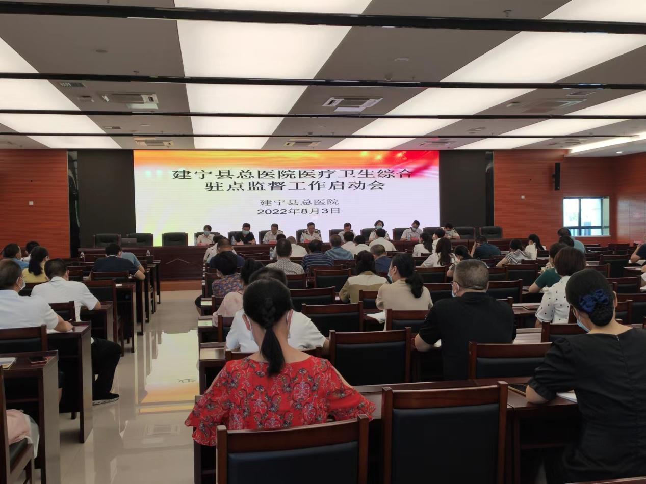 8月3日,建宁县总医院医疗卫生综合驻点监督工作启动会召开,市卫生计生监督所副所长池毓棣及驻点监督工作组成员出席会议,县总医院领导班子、中层及以上干部参加会议,县卫健局党委书记、局长杨全良主持会议。
