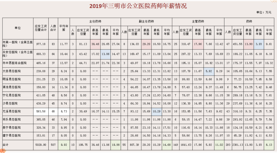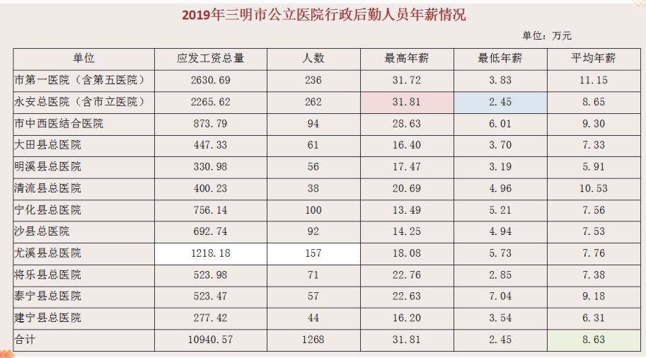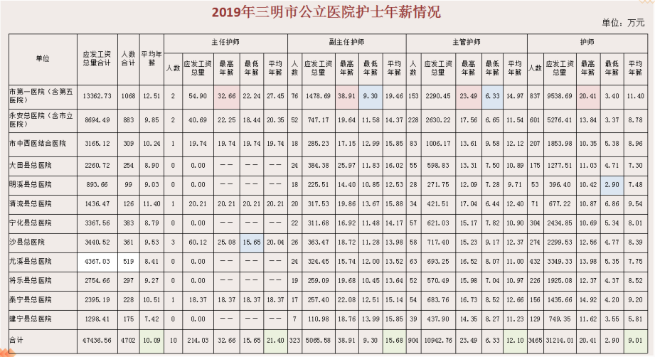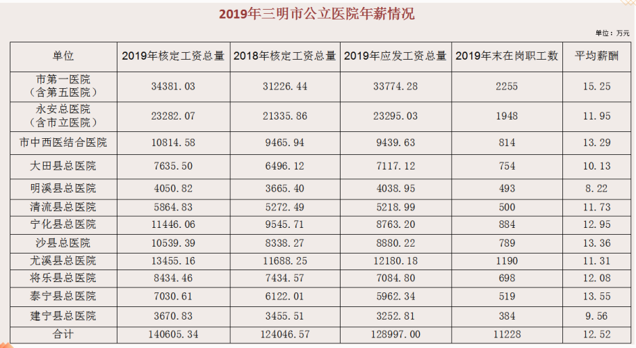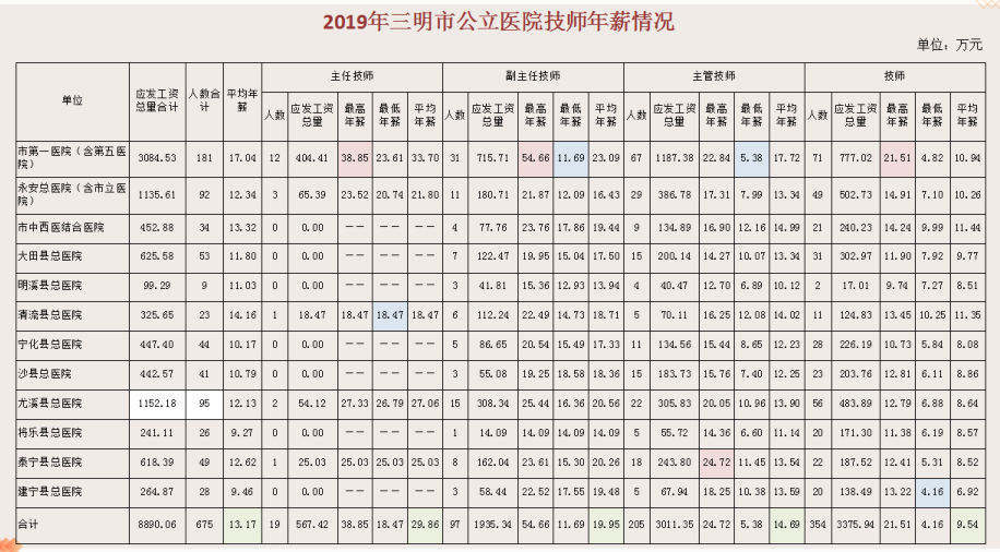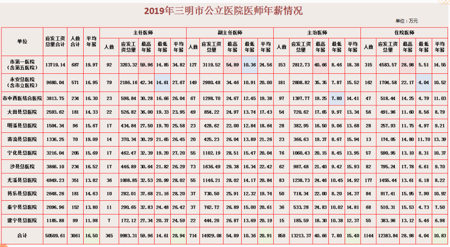 晒一晒,三明市医务人员年薪